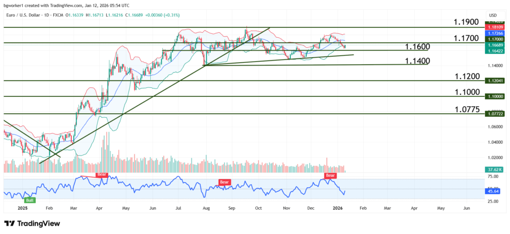 The first barrier is located at 1.1600, but this is a minor support, which could be broken with ease. The next barrier is 1.1500, which should be considered a zone of support, not an exact number. The more important support is located at 1.1400 (July 2025 low).