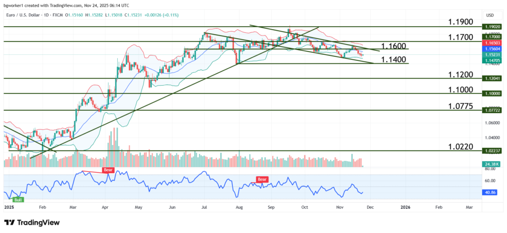 The pair is on a downward path after the last failed attempt to break above the resistance at 1.1600. Assuming there’s no major disruption coming from the Fed interest rate, the first destination will be the confluence zone created by the bearish trend line and the support at 1.1400.