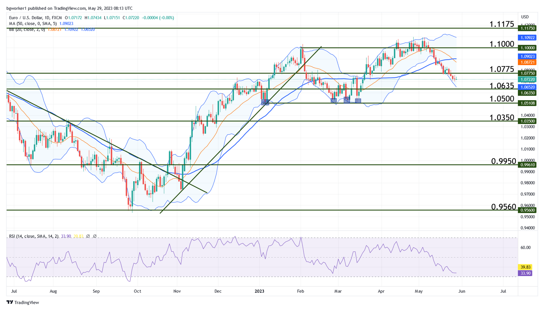 The greenback is on the offensive, fuelled by growing optimism about the U.S. Federal Reserve implementing further rate hikes. It seems that a deal regarding the debt ceiling has been reached between U.S. President Joe Biden and House Speaker Kevin. The $31.4 trillion debt ceiling will be suspended until January 1st, 2025; however, the deal still has to go through Congress for a vote.